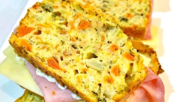 Hervir el brócoli y la zanahoria hasta tiernizar. Separar los arbolitos del tronco y hojas y reservar para otra receta. Mezclar los huevos batidos con los tallos y hojas de brócoli y la zanahoria, todo picado en cubos bien pequeños y agregar de a poco la harina con el polvo de hornear, la idea es que quede una masa como de buñuelo. Condimentar a gusto y pasar a una budinera de 23 cm de largo engrasada previamente. Hornear por 35 minutos a 180° C. Desmoldar sobre una rejilla y cortar una vez frío. Rellenar con lo que más te guste.