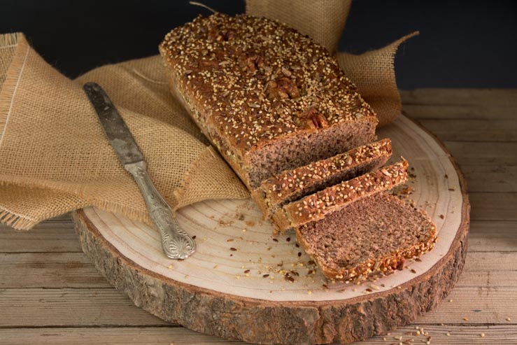 Dejar reposar tapado unos 30 minutos cerca del calor del horno, mientras se va calentando. Luego de este tiempo de reposo, va a estar levado y aquí recién le agregás las semillas por arriba. Usé amaranto, chia, sésamo negras, lino y girasol. Cuando la temperatura del horno llega a 200° C cocinar el pan unos 30 minutos aproximadamente.