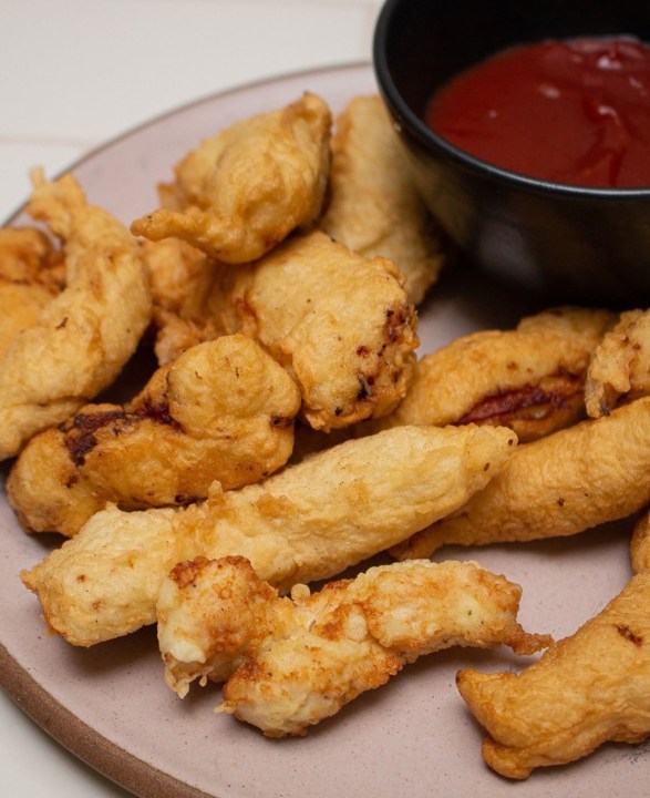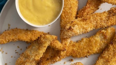 3. Pasar por la mezcla las tiritas de pollo y freír en aceite bien caliente.