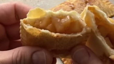 Para el relleno colocar en una olla las manzanas previamente peladas y cortadas en cubos. Agregar la manteca, el azúcar y la canela. Cocinar 10 minutos hasta que ablanden. Incorporar el agua mezclada con el almidón de maíz y cocinar 2 minutos hasta espesar. Dejar enfriar.