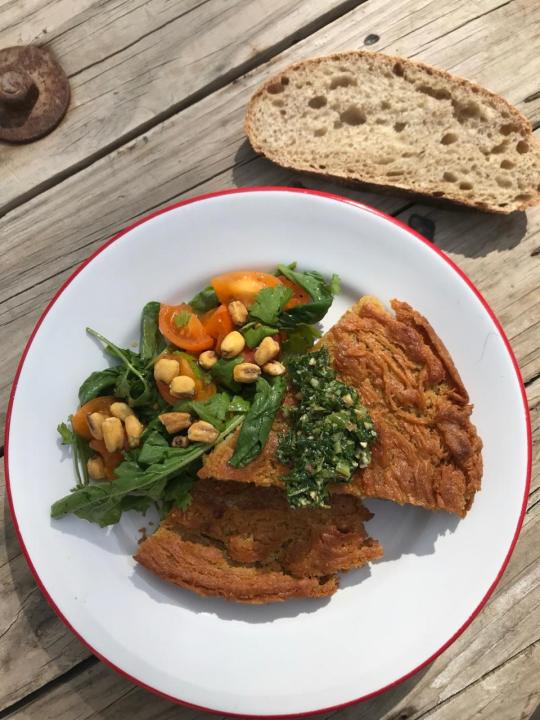 "Soy cocinero patagónico nómade. Me gusta cocinar en las bodegas rionegrinas, festivales populares o pequeños eventos. Los platos que me gustan son un mix de la comida popular del mundo a veces aggiornada la Patagonia. Trabajo como Chef asesor de Entre Bardas SRL", Juan Pedro Piergentile.