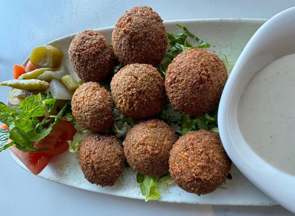 Preparar el yogurt con el tahini, sal y un poco de jugo de limón. Se suele servir con algunos pickles y hierbas frescas además de la salsa de yogur.