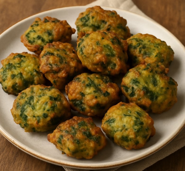 LUNES: Buñuelos de espinacas con ensalada de zanahorias, manzana y nueces
