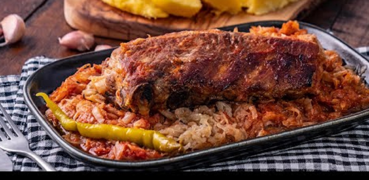 JUEVES: Costillas de cerdo en colchón de repollo y morrones