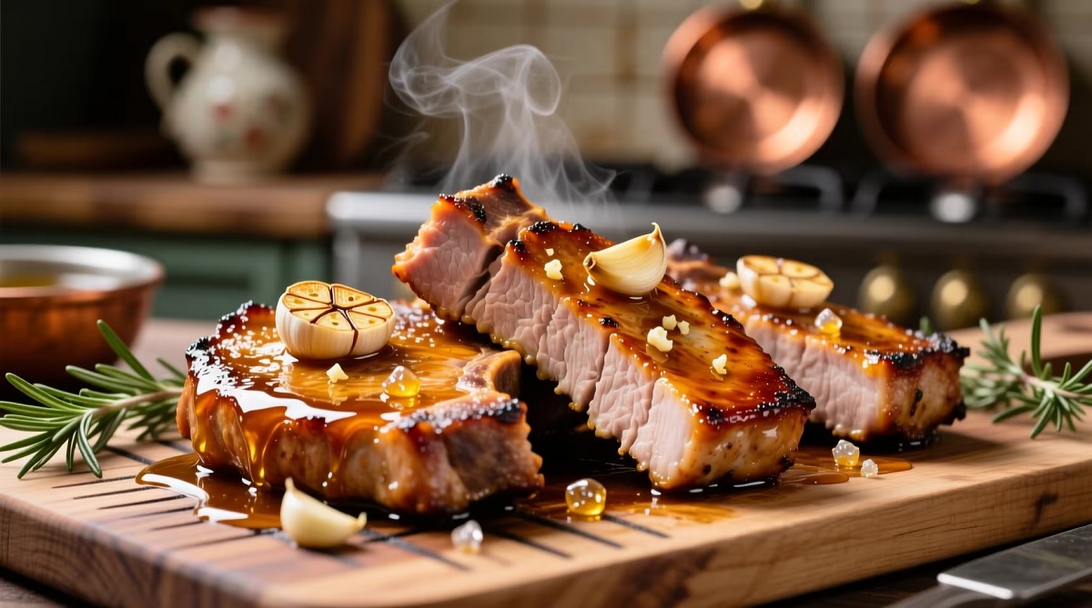 2. Sellar el cerdo a fuego fuerte en una olla o sartén unos 7 minutos de ambos lados. Cuando el cerdo esté dorado -pero no cocido- agregar el aceto balsámico, las semillas de comino y volver a salpimentar.