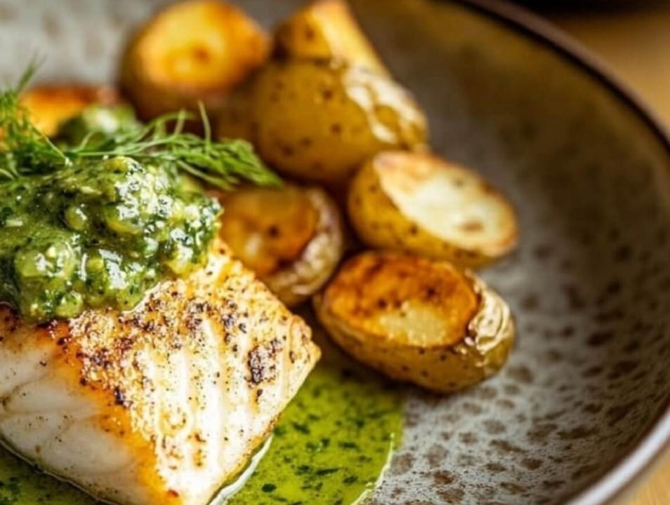 MARTES: Merluza en salsa verde y papas al vapor