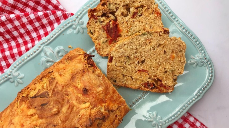 Integramos todo muy bien y sumamos 1 puñado de albahaca fresca, 1 puñado de tomates secos hidratados, 1/4 taza de queso rallado y 3 cucharadas de queso crema. Revolver suavemente y volcar sobre un molde para budín previamente aceitado y enharinado. Cocinar a 180° C por 40 minutos.