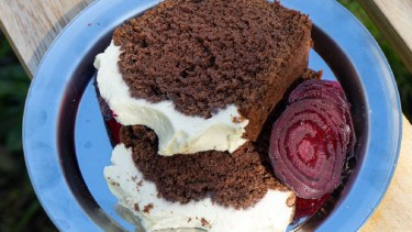 2. Cubrir el budín con el frosting y decorar con los chips de remolacha.