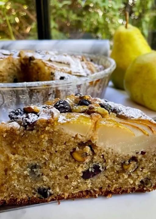 ¡Sin batidora! Animate a esta torta integral de pera, arándanos y pistachos