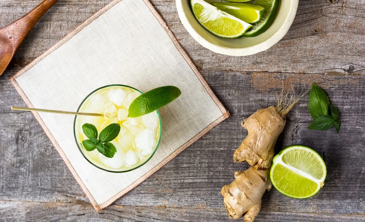 Colocamos otro hielo y completamos con agua tónica. Con la cuchara, otra vez, realizamos un movimiento para integrar. Decoramos con un penacho de menta piel de limón (si querés) y a disfrutar.