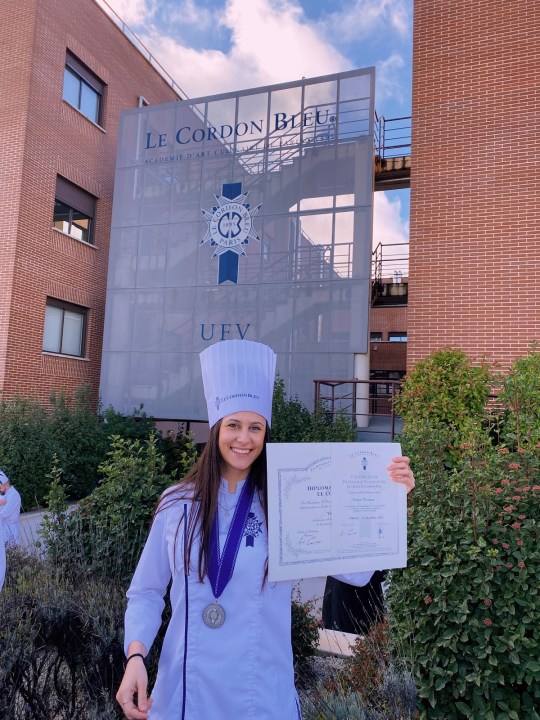 “Después de esto decidí irme a estudiar algo específico en pastelería y uno de los grandes sueños de cualquier cocinero/pastelero es poder cursar en alguna de las sedes de Le Cordon Bleu, la primera escuela de gastronomía en el Mundo, que tiene origen en Francia. Tuve la posibilidad de ingresar, en la sede de Madrid, me aceptaron y realicé la especialización en pastelería”, agregó orgullosa.