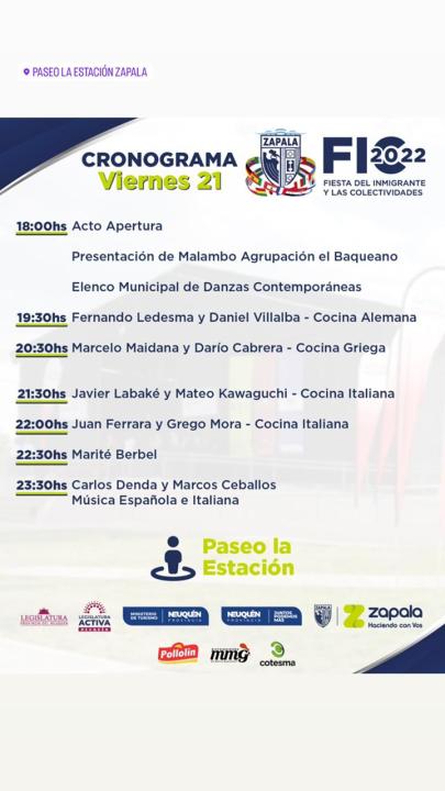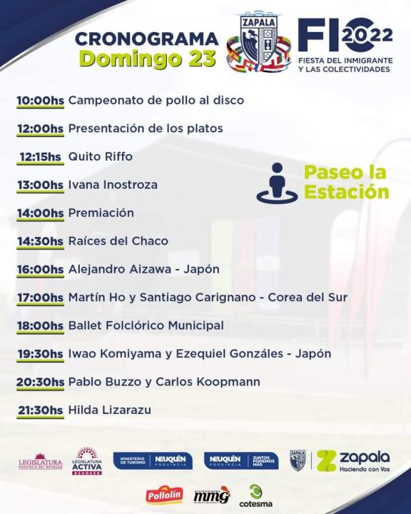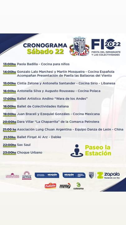 La ciudad de Zapala se prepara para vivir una nueva edición de la Feria de los Inmigrantes y las Colectividades los días 21, 22 y 23 de octubre en el predio del Paseo La Estación. Profesionales gastronómicos de la región y el país se sumarán a las presentaciones artísticas y musicales de renombre en lo que será un fin de semana para no perdérselo.