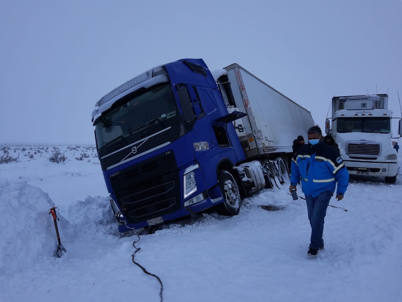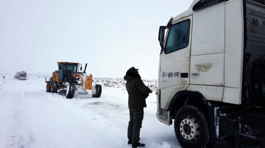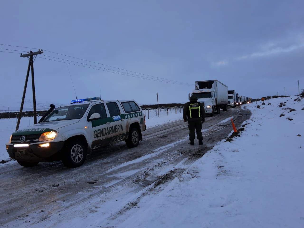 Después, los gendarmes lograron, en coordinación con personal de Vialidad Nacional, despejar la nieve del camino mediante la utilización de una máquina motoniveladora, como así también vehículos de Gendarmería escoltaron a los camiones hasta su egreso del país, priorizando los transportes de carga peligrosa.