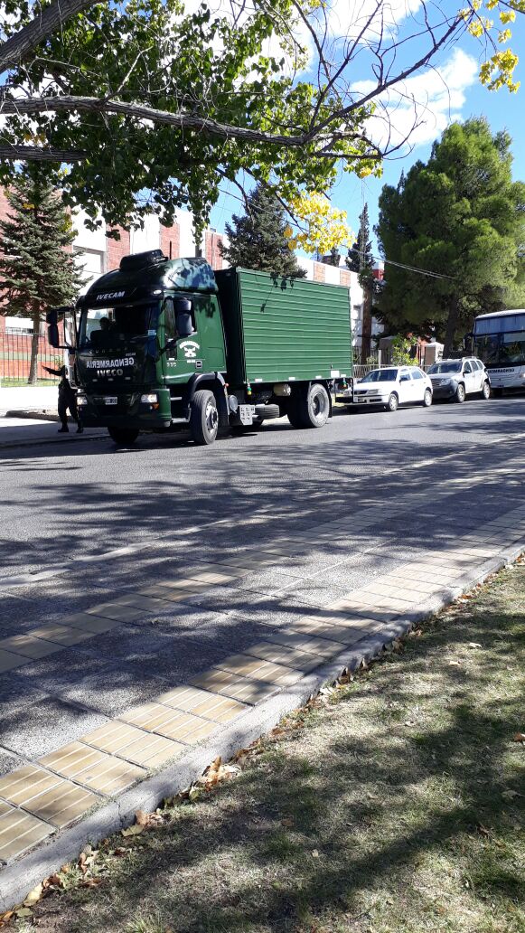 Un camión y un colectivo llegaron a la sede de la avenida Argentina esta mañana. Como todos los Días de la Memoria, se reforzaron las medidas de seguridad.