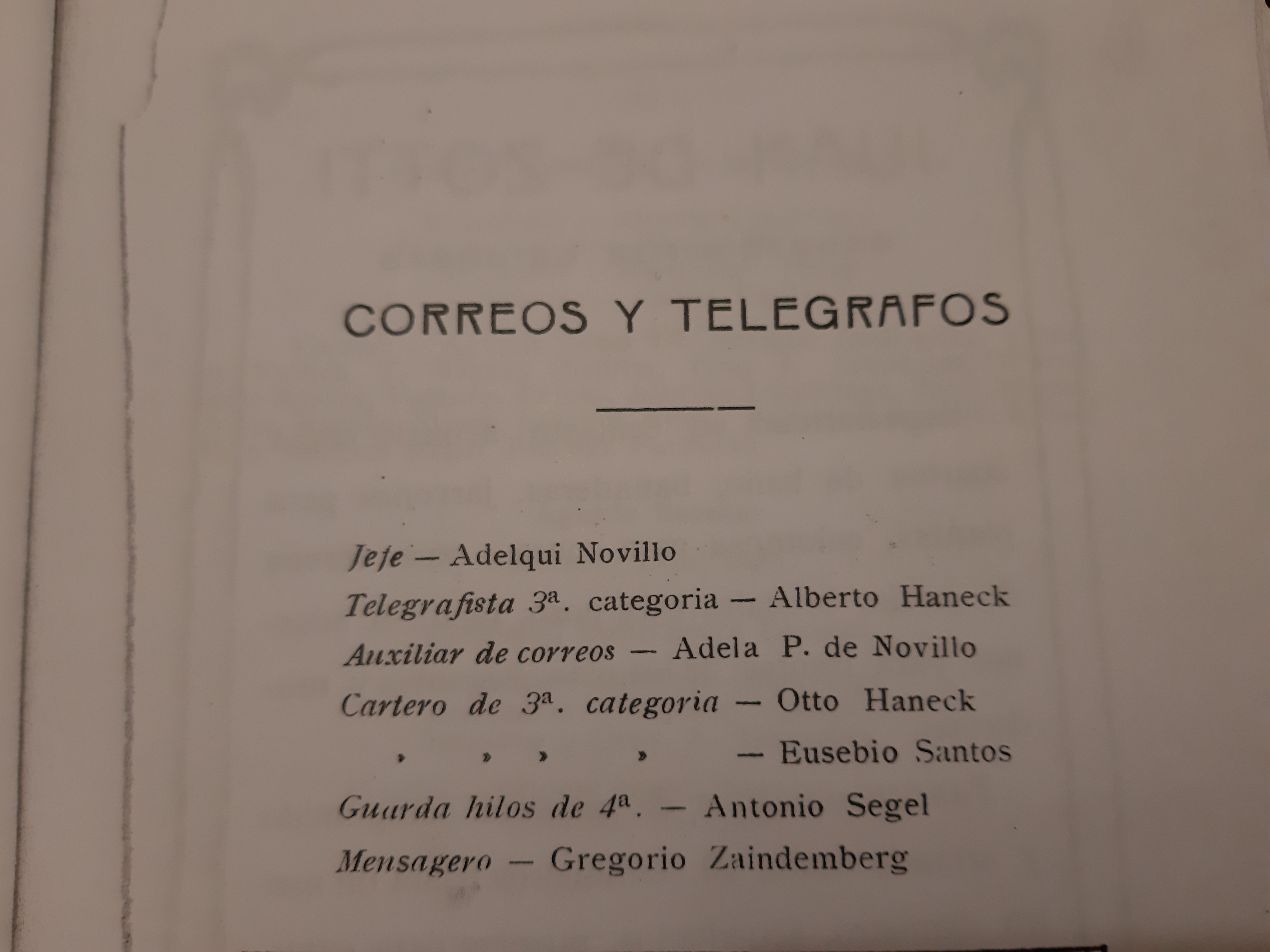 Trabajaban Adelqui Novillo, Alberto Haneck, Adela P. de Novillo, Otto Haneck, Eusebio Santos, Antonio Segel y Gregorio Zaindemberg.
