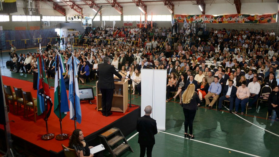 El acto se realizó en el Gimnasio Municipal N°3. No hubo funcionarios provinciales ni tampoco participó el gobernador Weretilneck y la electa Arabela Carreras que se encontraban en el Alto Valle.