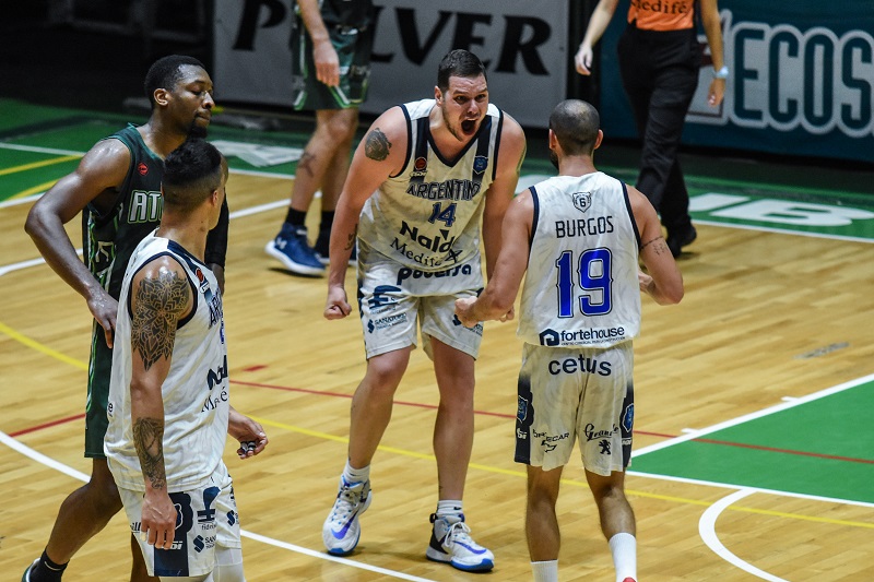 Argentino (Junín) necesitó de tres suplementarios para vencer a Atenas (Córdoba), por 116 a 112, después de igualar en 80, 90 y 102. En el ganador uno de los destacados fue el neuquino Agustín Pérez Tapia, con 24 tantos.