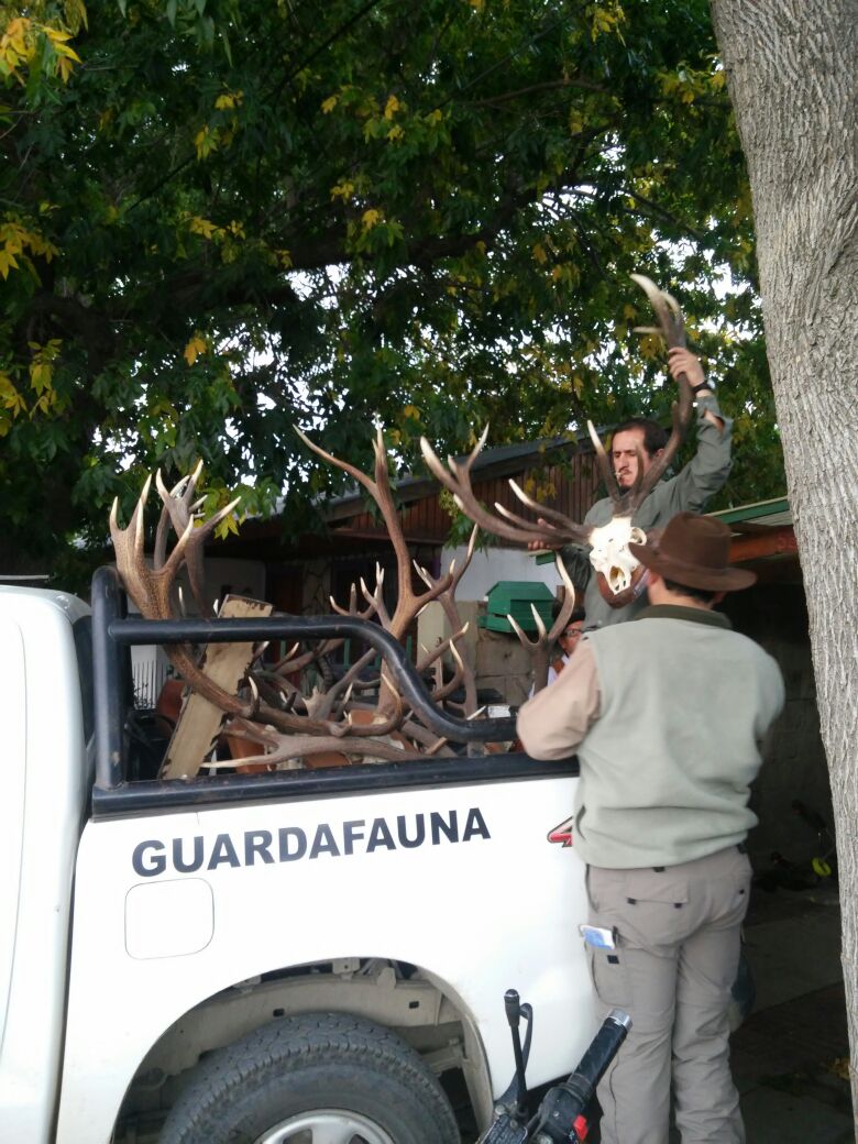 Esta mañana se llevó adelante otro allanamiento en una cabaña, donde se encontró una cabeza de ciervo valuada en unos 13.000 pesos. También se secuestró una camioneta, que quedó a disposición del fiscal Manuel González, quien está a cargo de la causa.