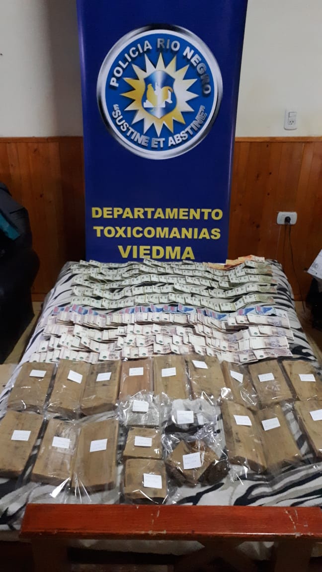 Una serie de allanamientos en forma simultánea en Viedma y Carmen de Patagones dieron como resultado el secuestro de 16 kilos de cannabis sativa, un kilogramo de clorhidrato de cocaína, 123.000 pesos, teléfonos celulares, armas de fuego y municiones. Hay cuatro detenidos.