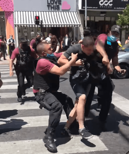 Se viralizó en las redes sociales un video en el que se ve a la Policía de la Ciudad de Buenos Aires golpear salvajemente a uno de los arrestados.