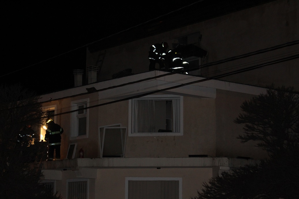 El fuego se desató en el segundo piso del hotel Hue Melen, ubicado en la calle Almirante Brown al 929 esta madrugada.