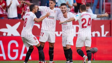 Papu Gómez, autor de uno de los goles, Gonzalo Montiel, Lucas Ocampos y Erik Lamela fueron titulares en el equipo andaluz, mientras que el neuquino Marcos Acuña estuvo en el banco.