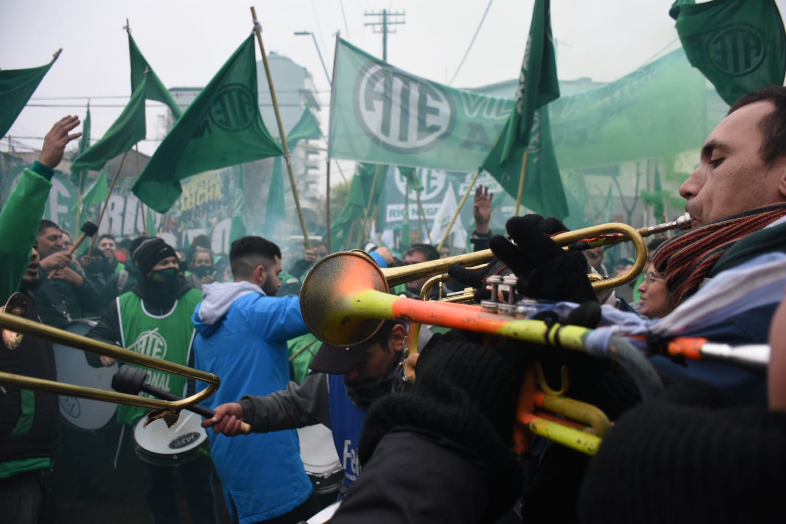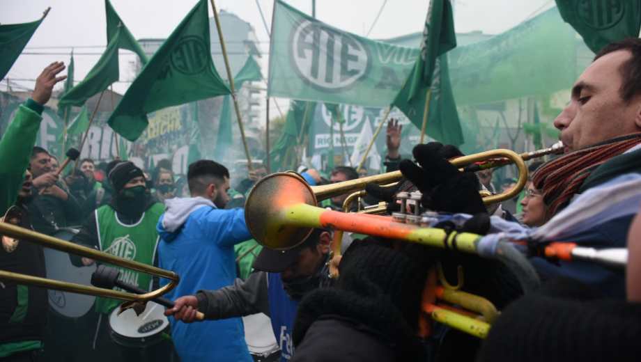 Alrededor de las 12:30, comenzó el acto de cierre en Avenida Roca y Tucumán, frente al Ministerio de Trabajo de Nación donde se esperaba que hablen los referentes de los tres gremios integrantes del Frente Sindical.