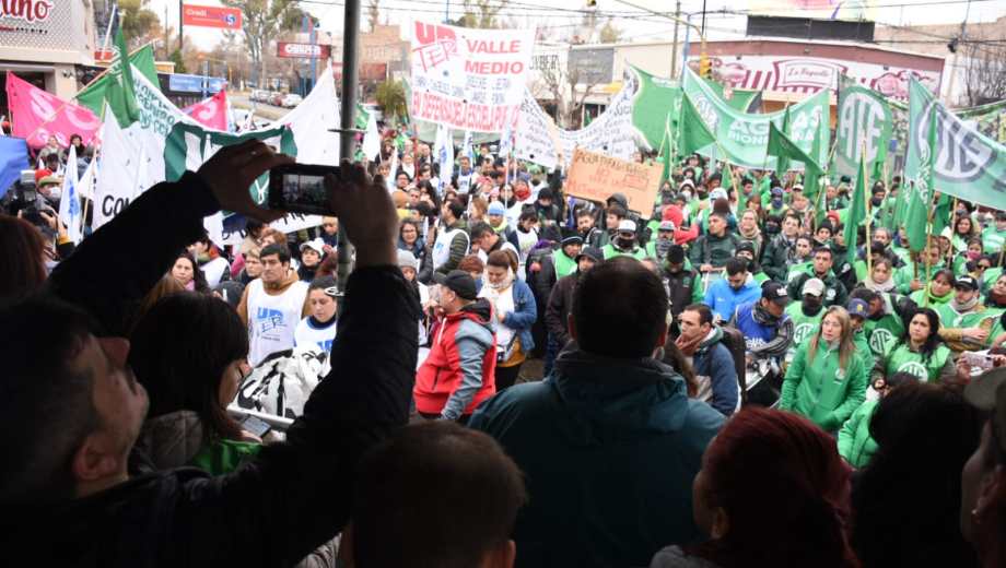 La columna de ATE, Unter y Sitrajur confluyó con otras organizaciones y sindicatos del Alto Valle. Hicieron salir a las autoridades de Anses, Ipross y el Consejo Escolar.