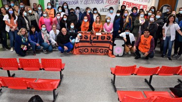 En la capital provincial se realizó una convocatoria en el hall central del hospital Artémides Zatti en coincidencia, además, con el segundo aniversario del inicio del reclamo salarial en la provincia con aquellas primeras marchas realizadas por el personal hospitalario en plena pandemia.