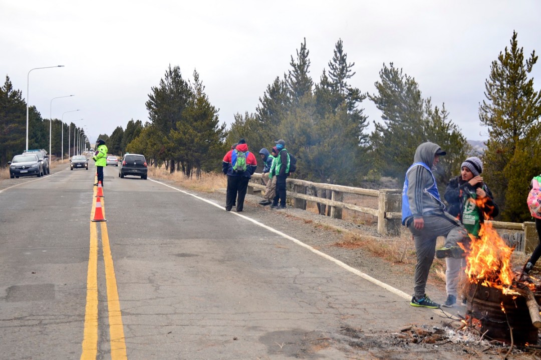 La protesta de ATE, con quema de ramas y tachos con fuego, se realizó a un kilómetro de la barrera de control a la aeroestación en una mañana fría con heladas. La protesta se extendió por tres horas.