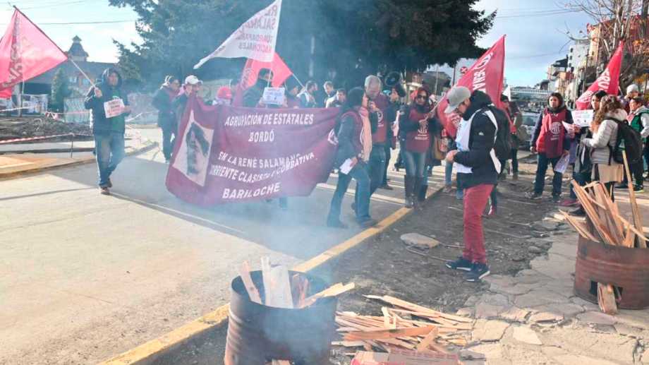 El gremio cumple hoy un paro con protestas en todo Río Negro y en Bariloche se concentraron en el Monolito. Reclaman mejoras contractuales y salariales.