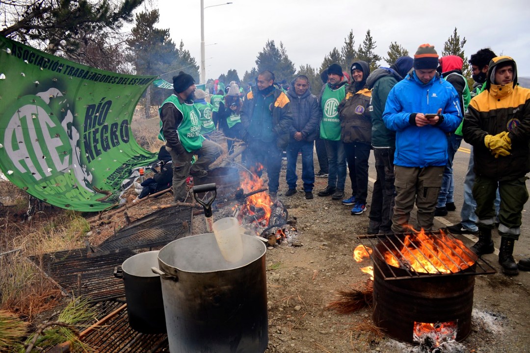 En la protesta de Bariloche estuvo el secretario general de ATE Río Negro, Rodrigo Vicente, junto a manifestantes del gremio de distintos puntos de la provincia y trabajadores de Splif. El bloque del acceso al aeropuerto fue total durante dos horas hasta que a pedido del fiscal Martín Lozada la manifestación se retiró a las banquinas y finalmente a las 11 se recibió la respuesta del Gobierno.