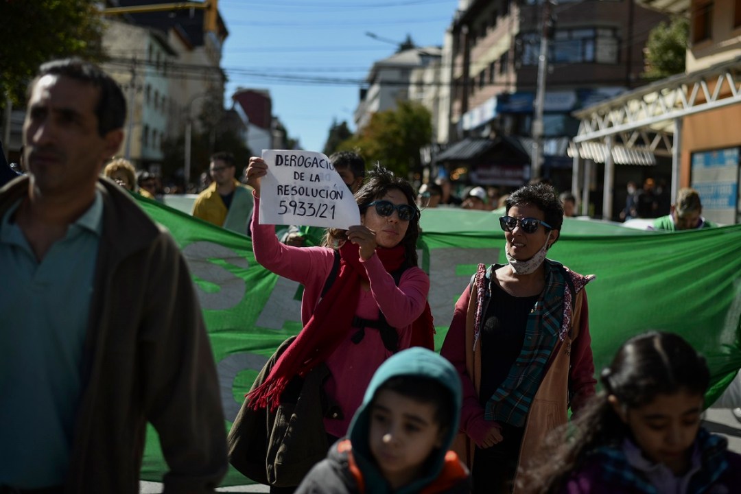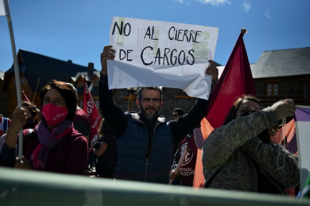 Los gremios ATE y Unter, respaldados por las dos CTA de Río Negro, se unieron hoy en Bariloche para reclamar al gobierno provincial que mejore la oferta salarial para el inicio del 2022, en la primera jornada del paro de 48 horas.