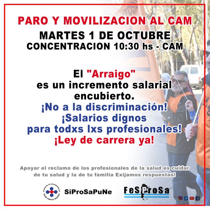 En este sentido, para el martes 1 de octubre los trabajadores anunciaron un paro en los hospitales. Esto implicará una «retención en las tareas ambulatorias», es decir que los turnos previstos para el próximo martes fueron suspendidos.