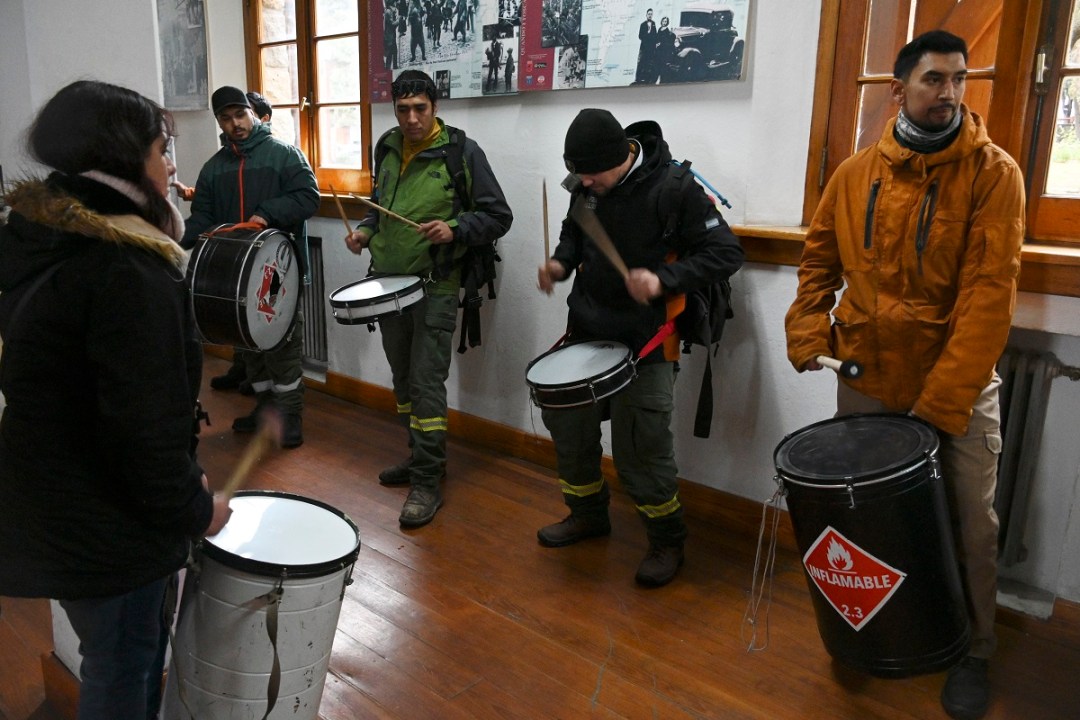 La subsecretaria de Protección Civil, Patricia Diaz, se acercó a pedirles a los brigadistas que paren de golpear los bombos porque el intendente y sus colaboradores no podían trabajar. Les dijo que la solución a la demanda que planteaban no es resorte de Gennuso y les propuso que trasladen la protesta al Concejo Municipal.