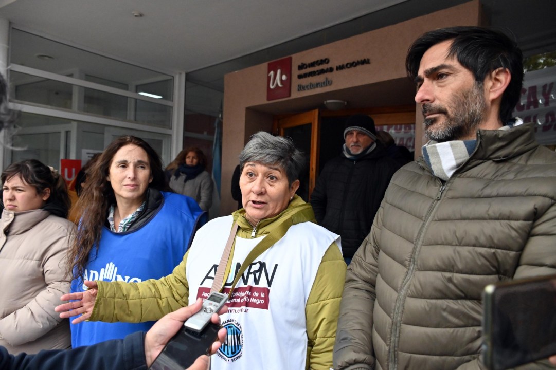 Frente al rectorado de la Universidad de Río Negro, se leyó un documento por la preocupación de la Ley Bases ya que sostienen que «atenta contra el sujeto histórico y social que encarnamos, esto es, los trabajadores y las trabajadoras».
