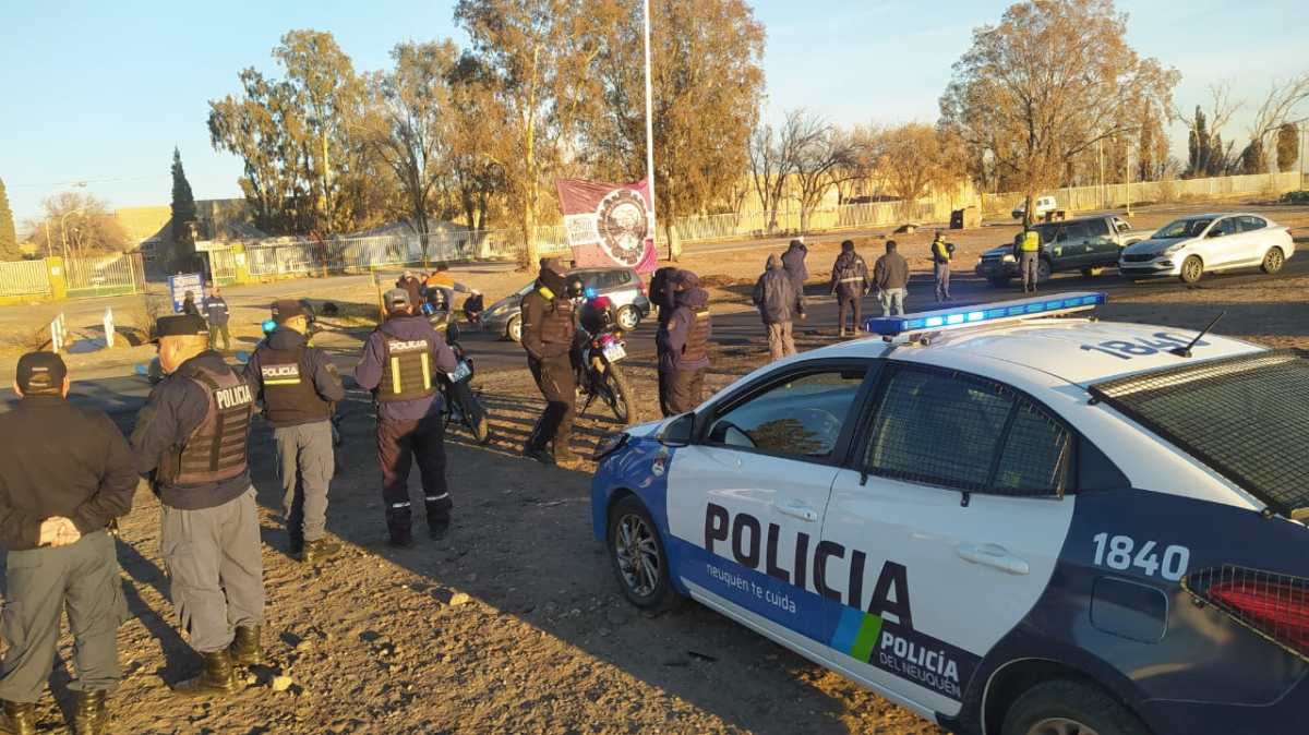 La actividad comenzó cerca de las 8 de la mañana, a la altura de la cerámica Zanon, sobre la Ruta 7. Allí realizan una volanteada para informar a la comunidad. Si bien no hay corte de tránsito, pero si un gran despliegue policial en la zona.