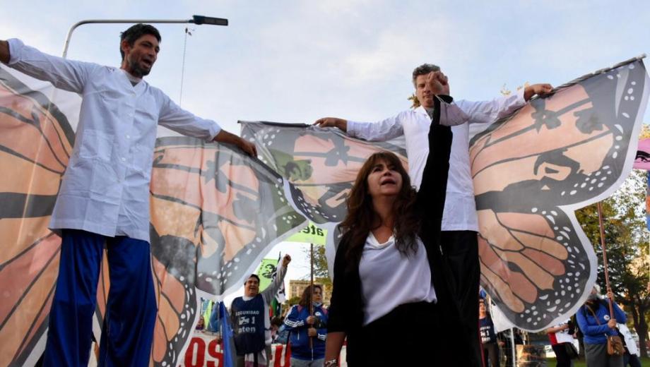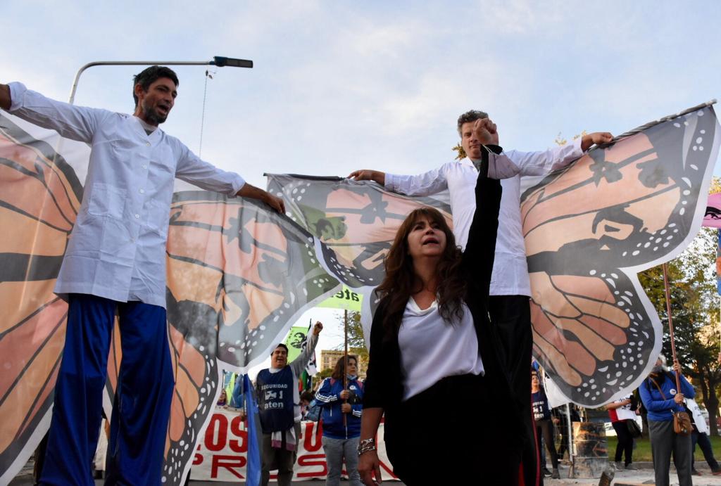 A los tradicionales muñecos de Sobisch y otros personajes repudiados por los manifestantes, se sumó una intervención con zancos representando mariposas que encabezaron la movilización. Cerca de las 20 comenzó el acto central en el escenario montado en la plazoleta del monumento a San Martín.