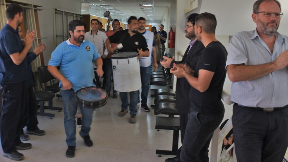 Pasadas las 10 de la mañana, un importante número de trabajadores judiciales comenzó el primer día de protesta con una ruidosa batucada que recorrió buena parte del edificio de la Ciudad Judicial, en Roca. Es la antesala del paro de actividades convocado por desde el gremio Sitrajur que concluirá mañana con una movilización al edificio del Superior Tribunal de Justicia (STJ), en Viedma.