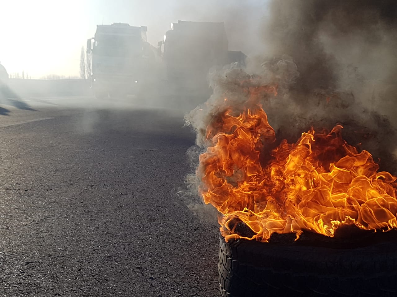 Además del corte en los cuatro carriles y colectoras de la Ruta 22 y la ruta chica, sumaron un tercer piquete en una calle rural paralela sobre la margen sur del canal principal de riego. Esa calle desemboca debajo del paso elevado de la 22 en Tres Puentes y en la calle rural María Auxiliadora de Godoy.