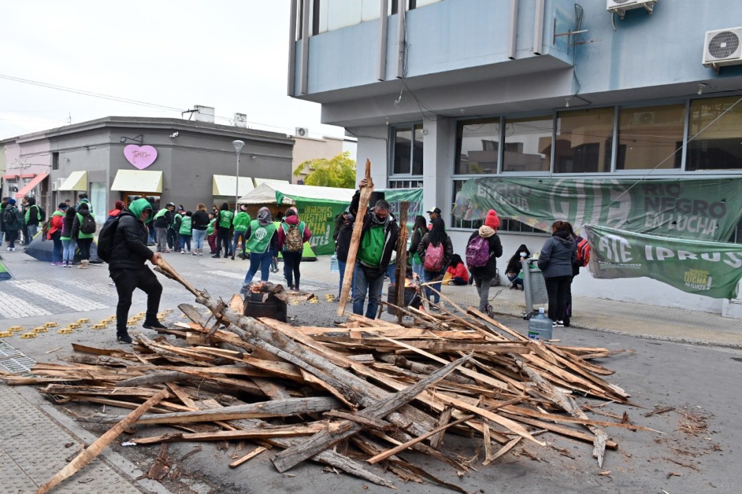 En Roca, el acatamiento fue casi total y muchas escuelas permanecieron vacías. Las actividades estuvieron divididas entre hoy y mañana, con fuertes protestas en la sede de Ipross y el Consejo Escolar desde las 10 de la mañana.