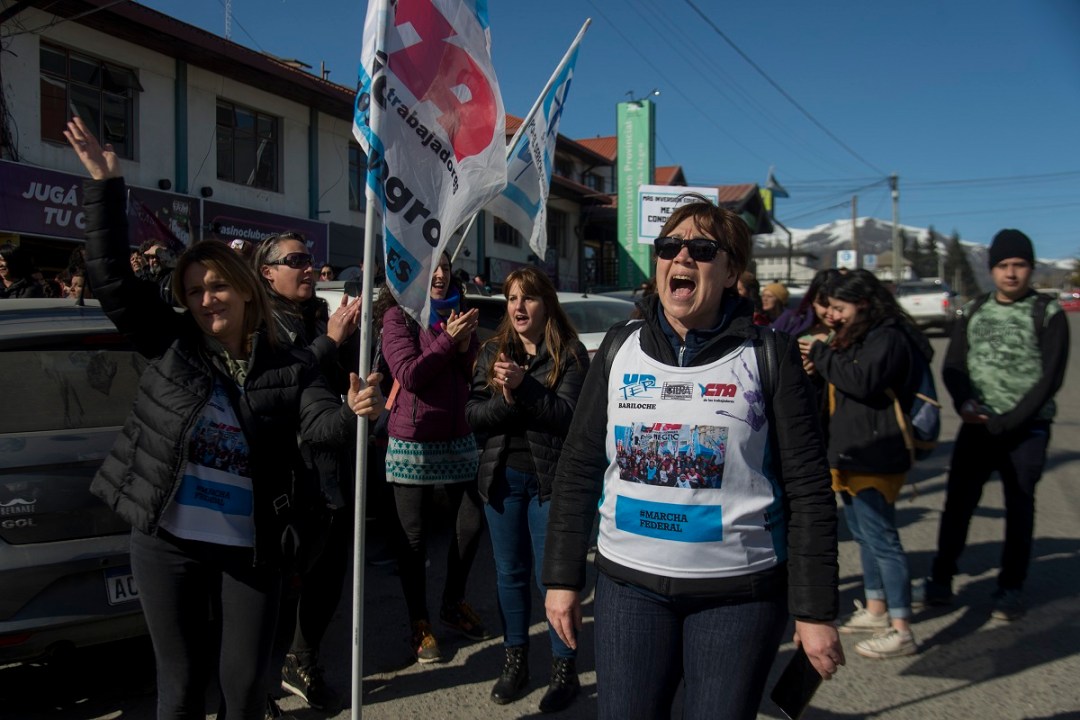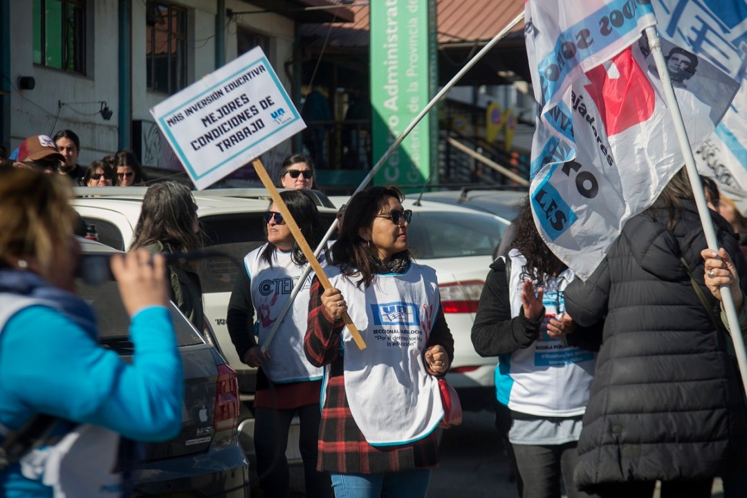 Docentes de Bariloche llevaron su reclamo a la calle Onelli. Foto: Marcelo Martinez