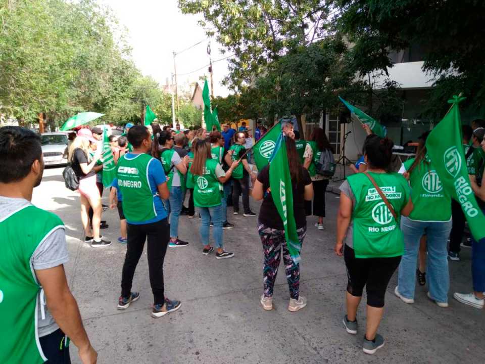Ya se apuestan frente a las instalaciones del Consejo Escolar de Roca y mantienen cortado el tránsito en calle Tucumán y Neuquén, donde una columna de trabajadores realizarán la intervención radiofónica.