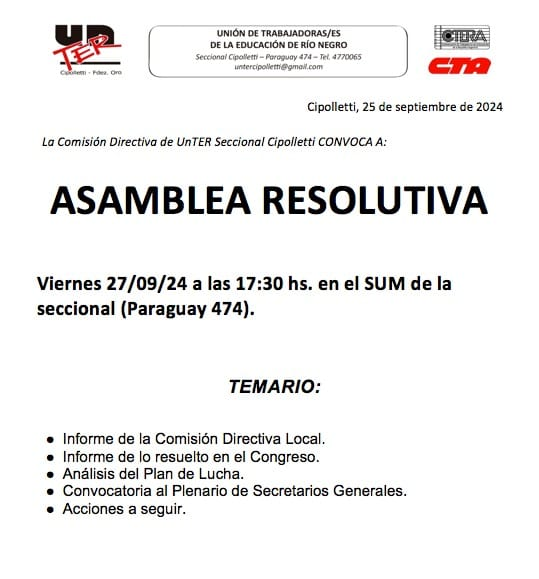 En tanto, en Cipolletti se planificó una asamblea resolutiva a las 17.30, en el SUM de la seccional local. Según el temario, se hablará de la continuidad del plan de lucha.