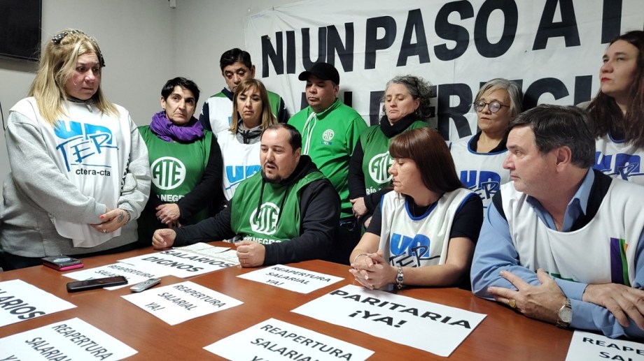 En conferencia de prensa ambos gremios coincidieron en adelantar el llamado a paritaria que fue ofrecida por el gobierno rionegrino para el jueves 7.