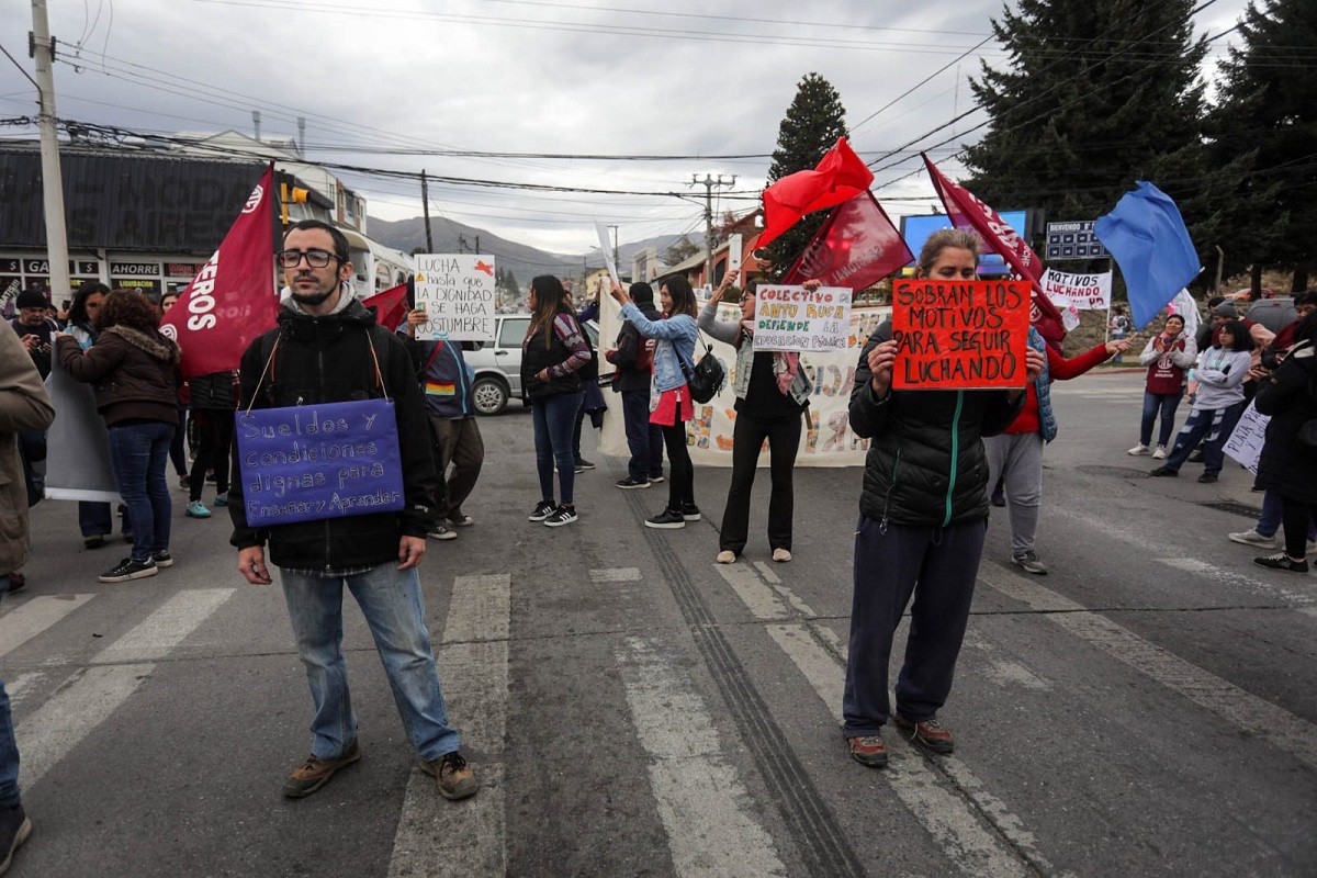 Malestar en la protesta de los docentes de Bariloche por los descuentos