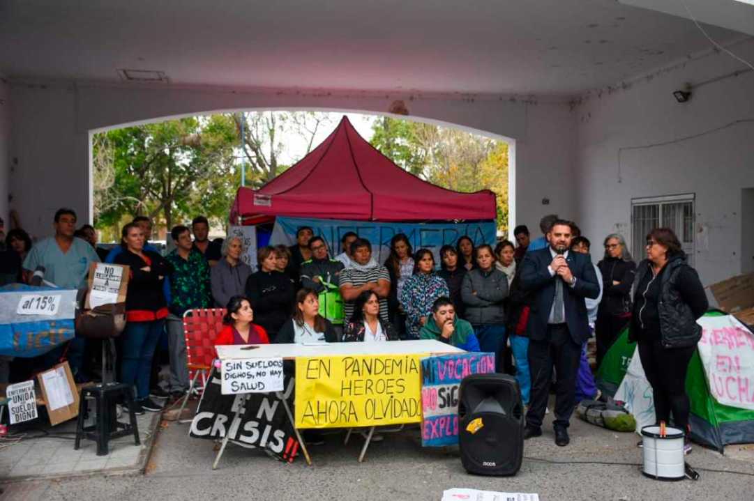 Los trabajadores de salud de Roca hoy realizaron una conferencia de prensa donde expresaron una vez más que su reclamo «es netamente salarial», enfatizaron.