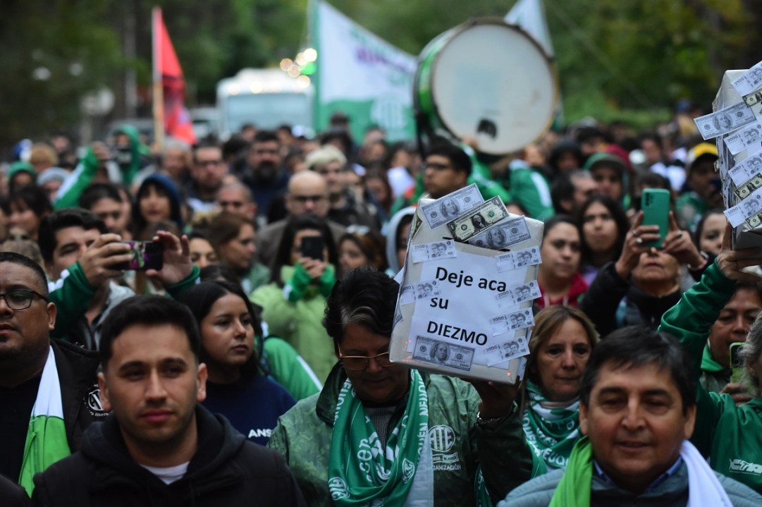 Sobre calle Roca, y frente a la sede del templo, se montó un escenario para el posterior acto que tuvo al secretario general del sindicato como uno de los oradores principales junto a trabajadores del Estado despedidos. Mientras tanto, el tránsito por el sector, a solo una cuadra de Casa de Gobierno, fue interrumpido.