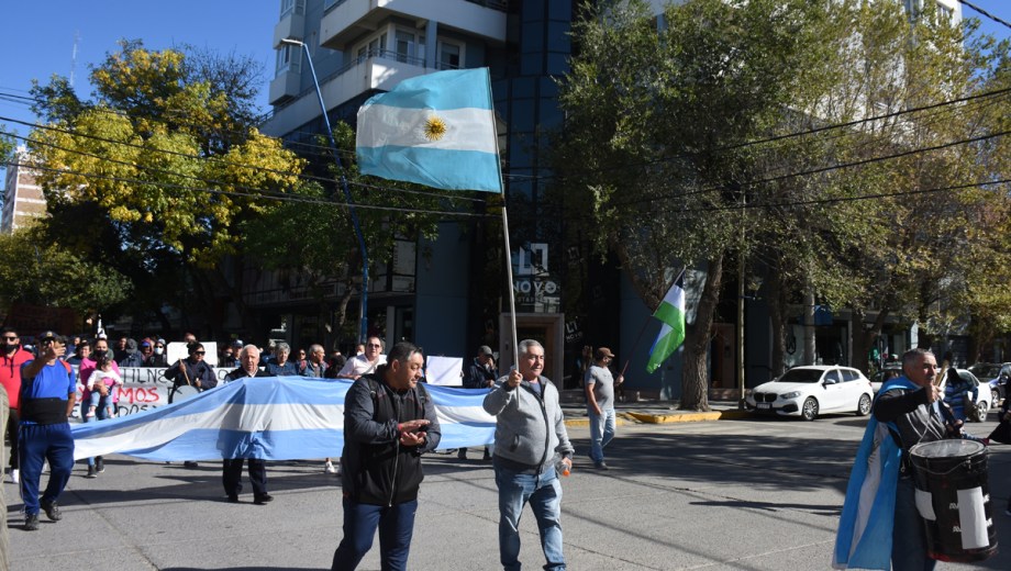 Alrededor de las 10 de la mañana, el tránsito de Avenida Roca y Tucumán se vio interrumpido por la movilización de los policías retirados en reclamo por la Zona Austral y trabajadores de salud nucleados en Asspur en medio de una jornada de protesta a nivel nacional por salarios.