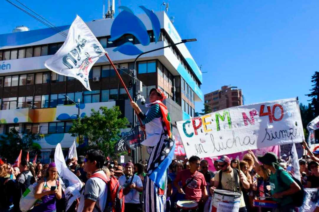 Sin inicio de clases este lunes, los docentes marcharon en centro de Neuquén en reclamo por salarios. ATEN decidió continuar con las medidas de fuerza a pesar del nuevo ofrecimiento salarial del gobierno provincial, mientras que el Sindicato Argentino de Docentes Privados (Sadop) adhirió al paro nacional convocado por la CGT. Pasado el mediodía, finalizó la medida con un acto en Casa de Gobierno.